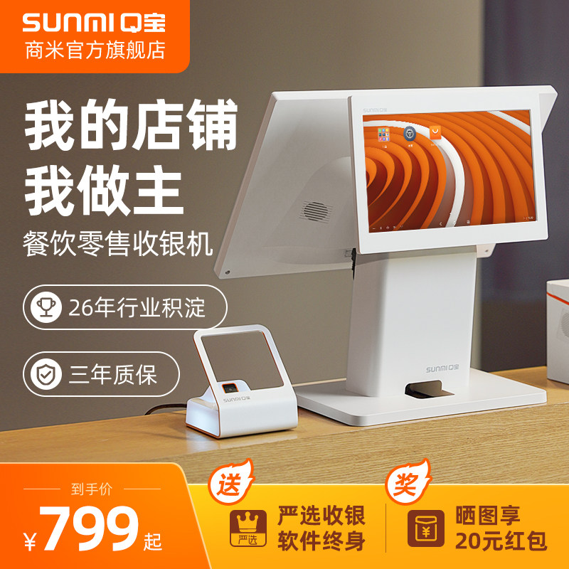 SUNMI商米Q宝收银机一体机餐饮奶茶店快餐小吃点单机零售超市母婴美发店称重收款机商用智能触摸双屏po系统热门设计联盟服务商