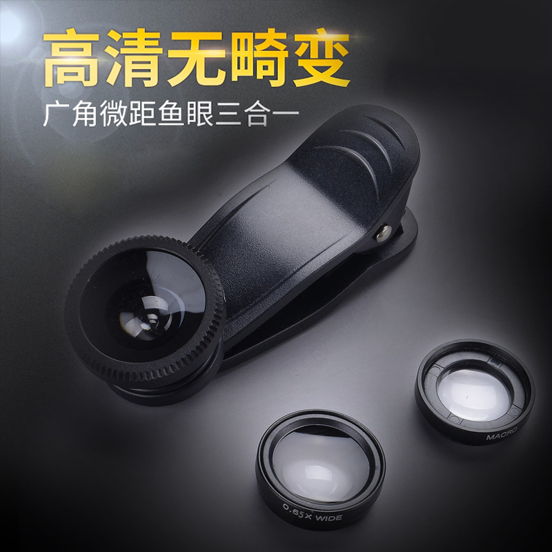 手机鱼眼镜头三合一 特效手机镜头放大镜 鱼眼广角微距自拍神器热门设计联盟服务商