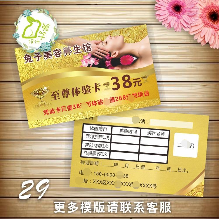 养生美容院积分卡体验卡设计美甲美睫名片次数卡定制疗程卡印刷热门设计联盟服务商