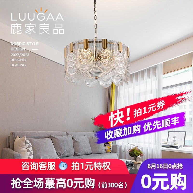 鹿家良品法式复古玻璃叶片吊灯客餐厅酒店大堂会所设计师样板房灯热门设计联盟服务商