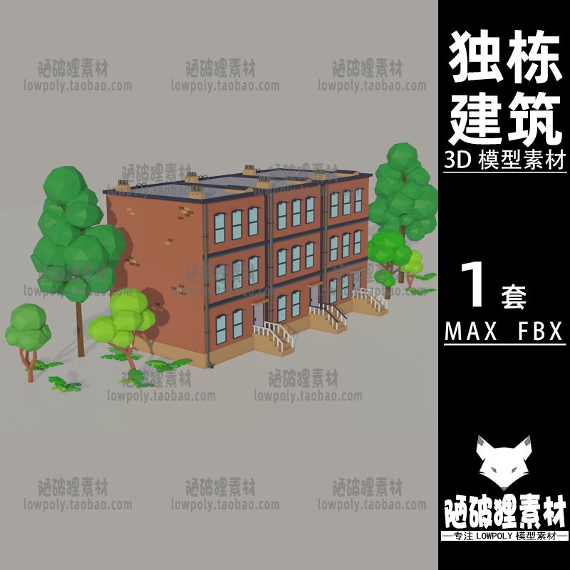 商业建筑lowpoly学校医院高楼低聚卡通模型MAX FBX设计素材源文件热门设计联盟服务商