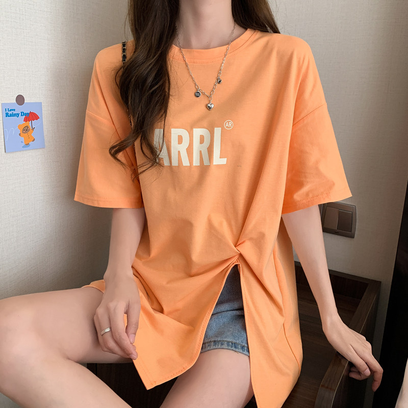 中长款t恤女短袖夏季韩版宽松设计感小众不规则开叉别致上衣ins潮热门设计联盟服务商