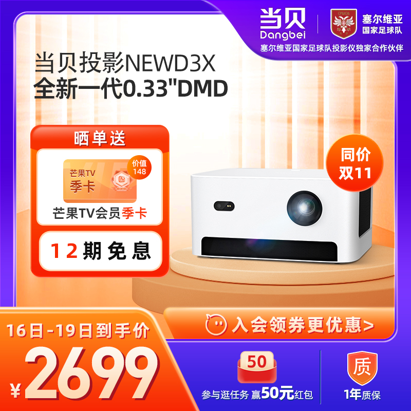 【款升级】当贝NEW D3X投影仪家用手机投影电视高清1080p智能无线投影机无线同屏客厅卧室家庭影院网课热门设计联盟服务商