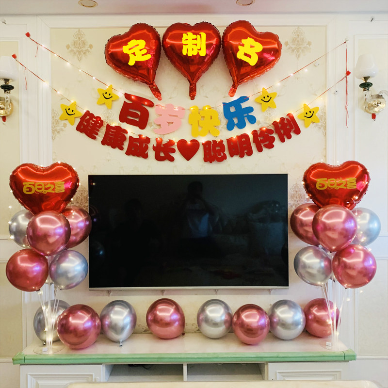 百天布置装饰牛宝宝百岁百日宴饭店背景墙场景客厅横幅100天网红热门设计联盟服务商