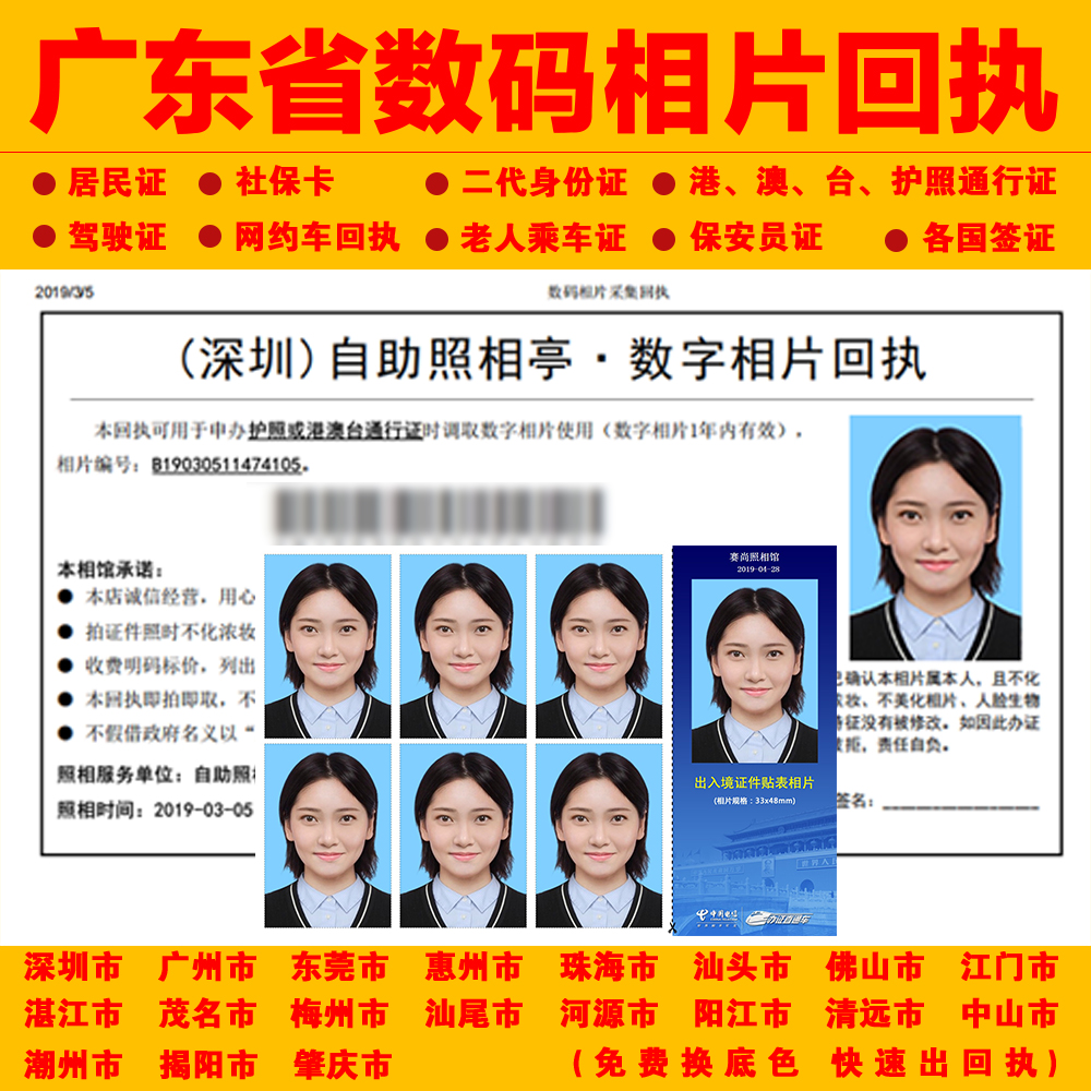 广东深圳居住证社保卡护照港澳通行 相片采集数码回执热门设计联盟服务商