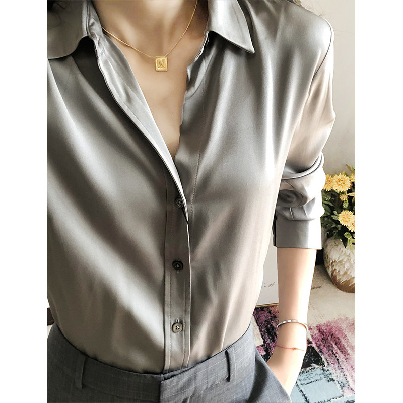 盈光粼粼。诺美服饰小众设计OL职场优雅上衣24姆米双乔真丝衬衫热门设计联盟服务商