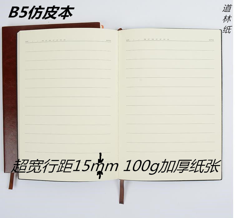 超宽行距笔记本15mm b5大横线1.5记事本子软面黑棕色企业办公会议热门设计联盟服务商