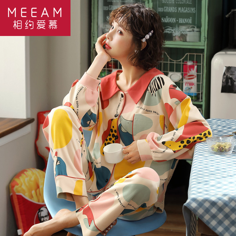 睡衣女春秋款纯棉长袖可爱网红款2021年新款家居服套装全棉夏天热门设计联盟服务商
