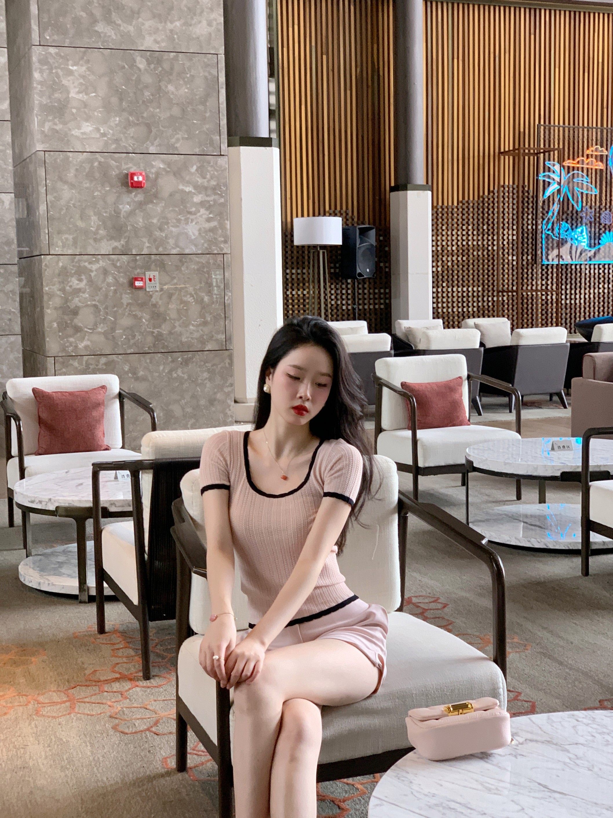 章蜜糖 镂空设计感显肤白瘦高温柔气质修身拼色微百搭针织上衣热门设计联盟服务商