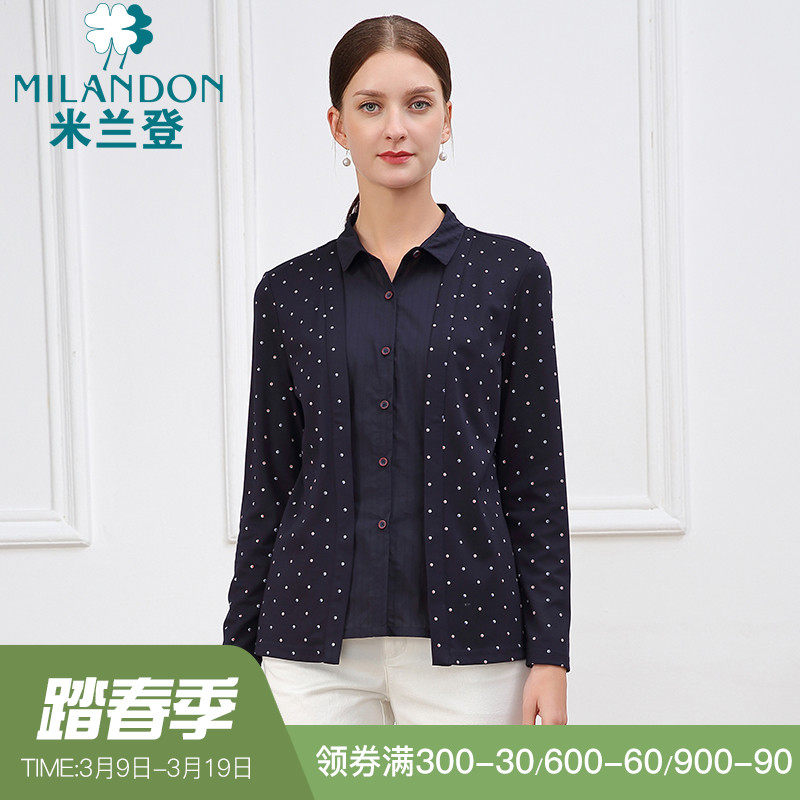 米兰登2022年春季新款假两件小衫中老年妈妈装波点衬衫设计感小众热门设计联盟服务商